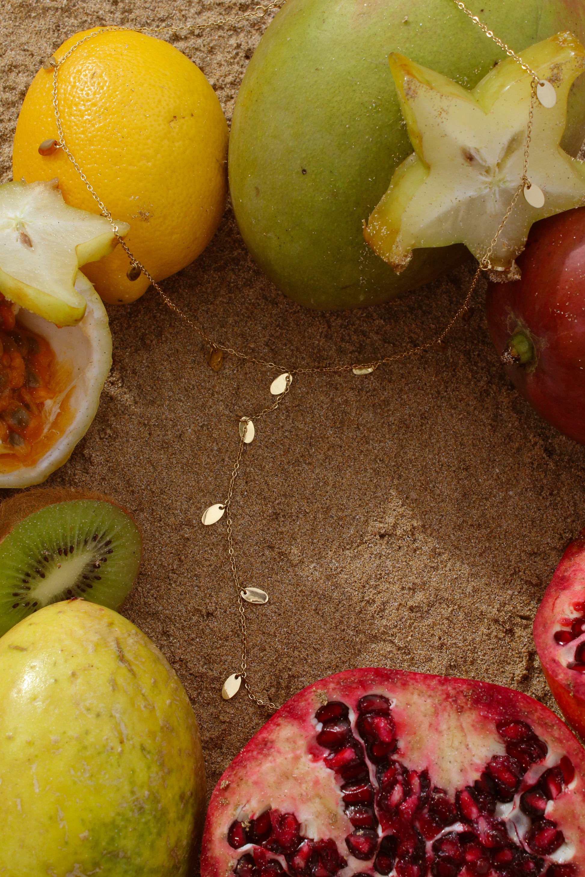 Liviano y versátil. Queda brutal con trajes de baño, tops abiertos o en layering. Los colgantes en caída le dan un toque sutil pero llamativo.