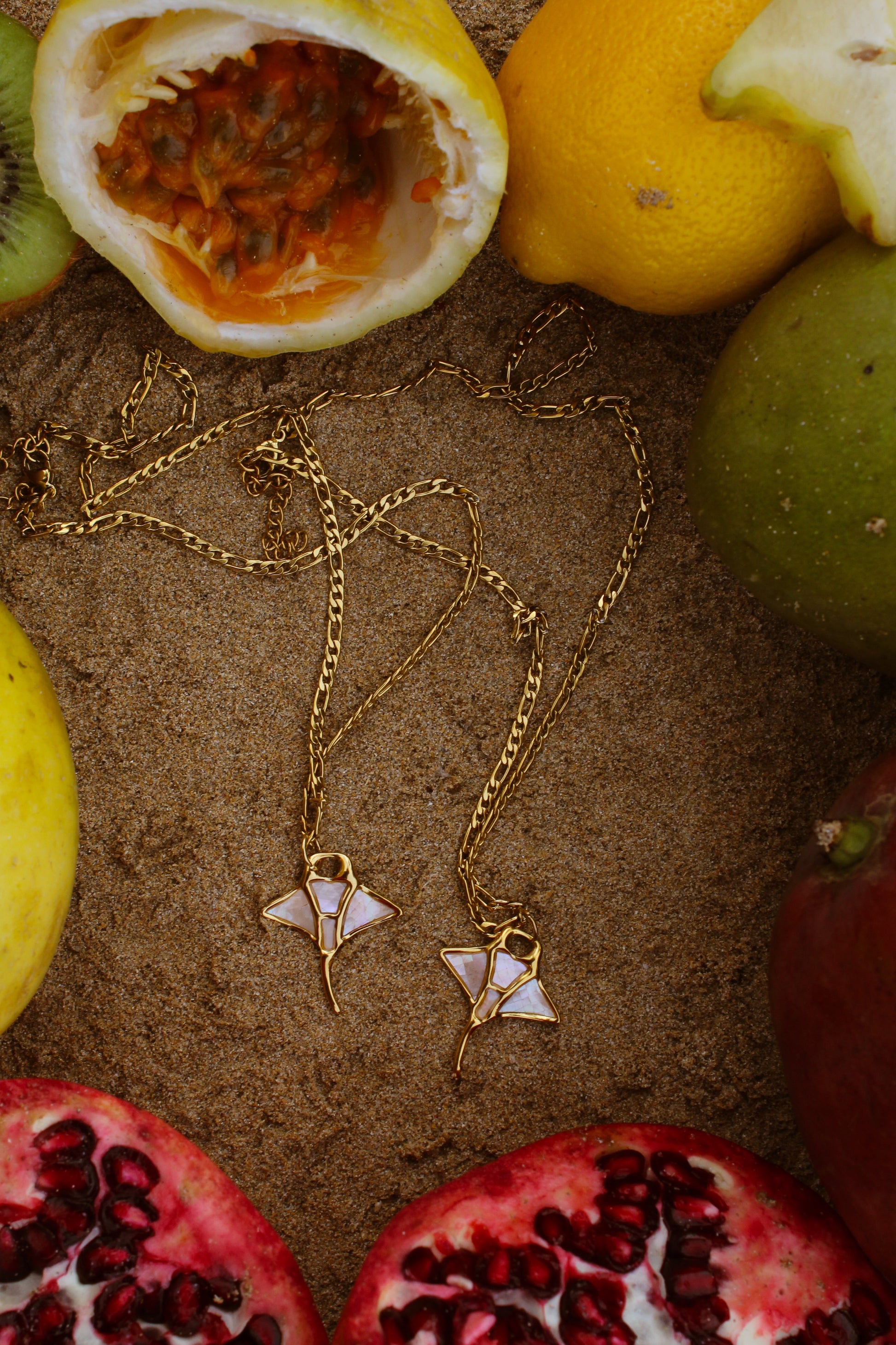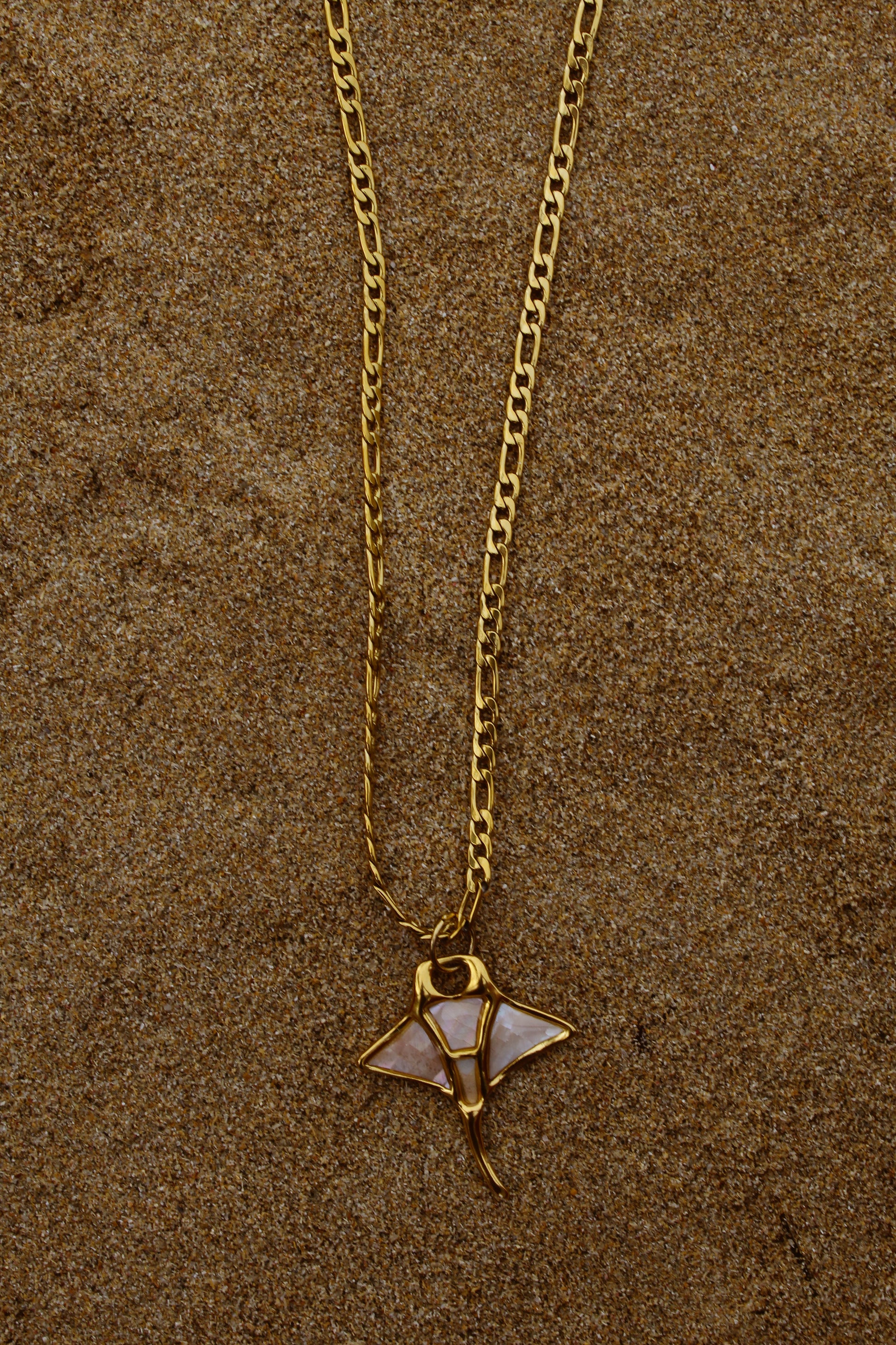 Cadena figaro dorada con charm que cambia según tu vibra. Desde conchitas y flores hasta soles o estrellitas. Pa’ usar sola o en combinación. Un amuleto que se adapta a ti, no al revés.
