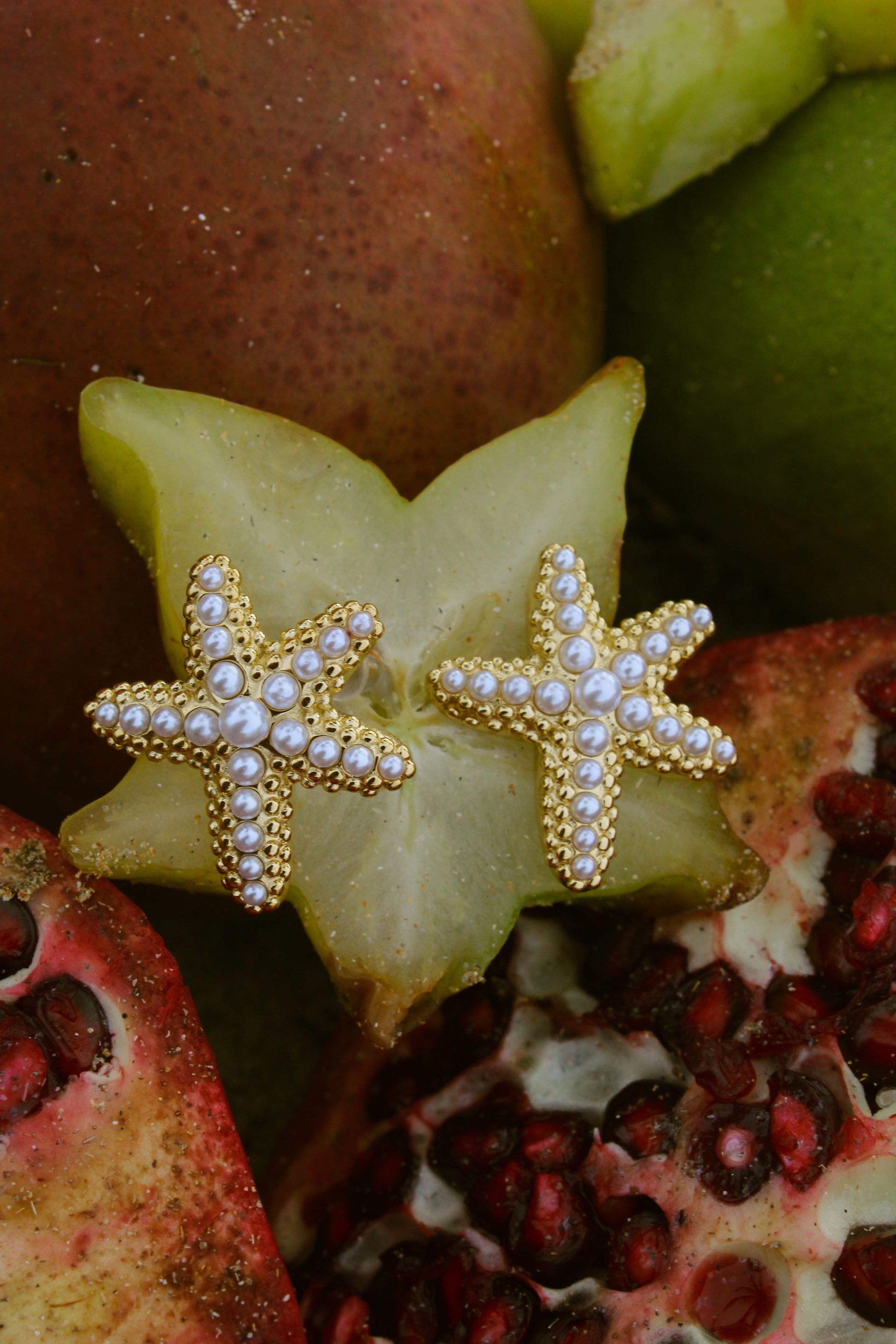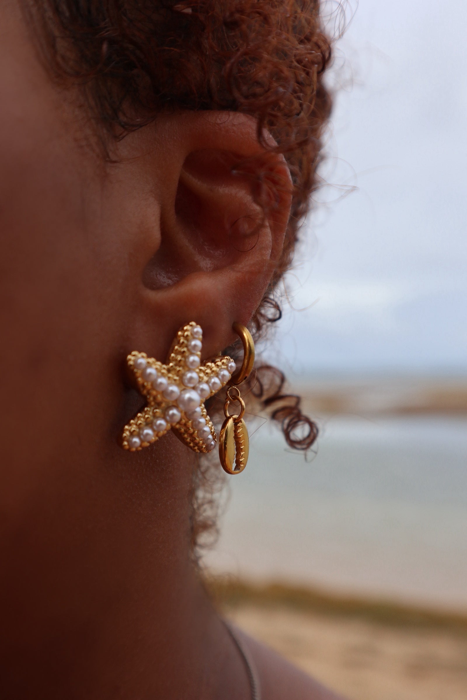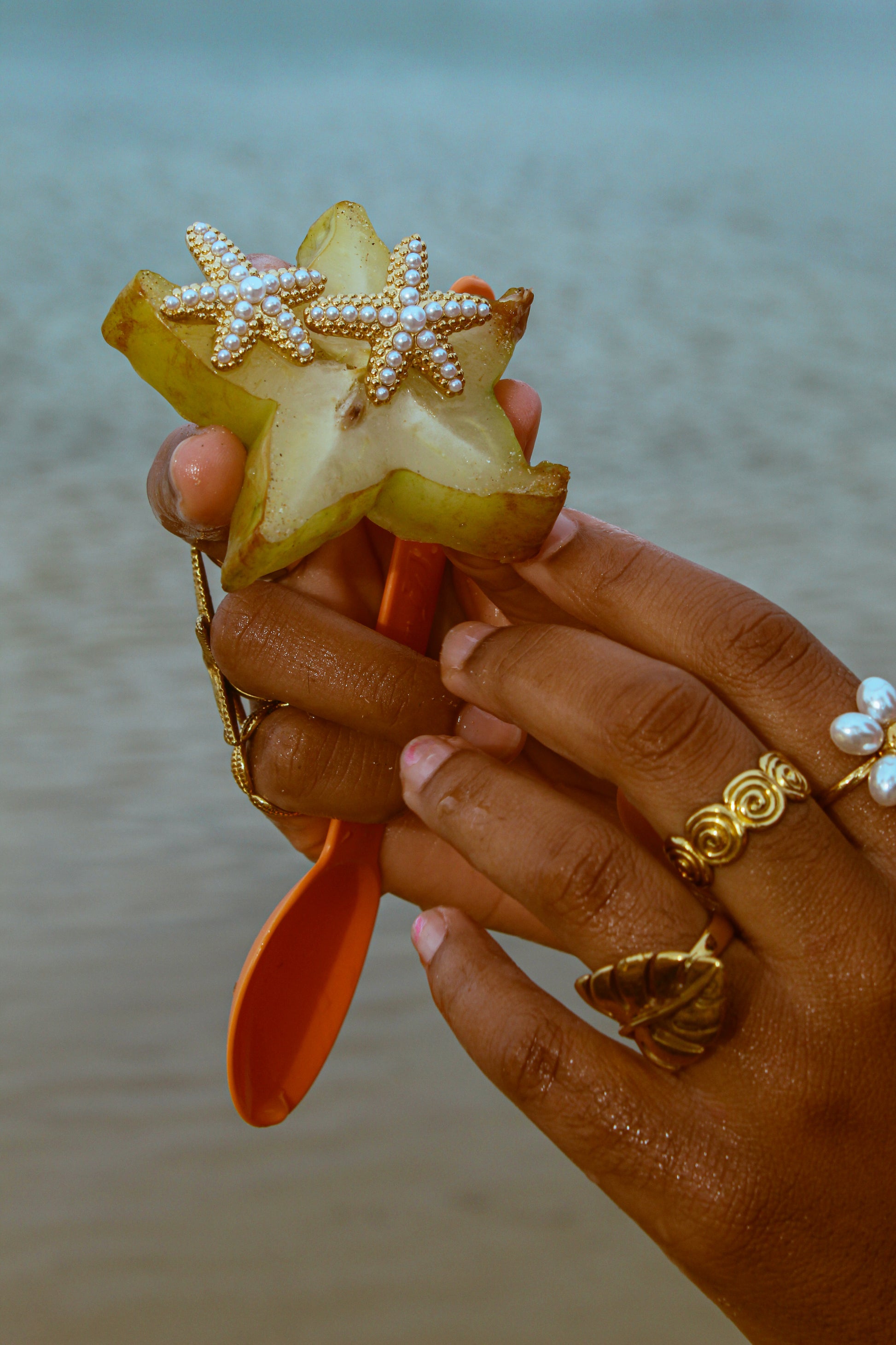 Estrella de mar dorada, llena de perlitas. Livianas y pa’ darle punto final a tu look de playa o salida. Si vas a brillar, que sea con Caicu.