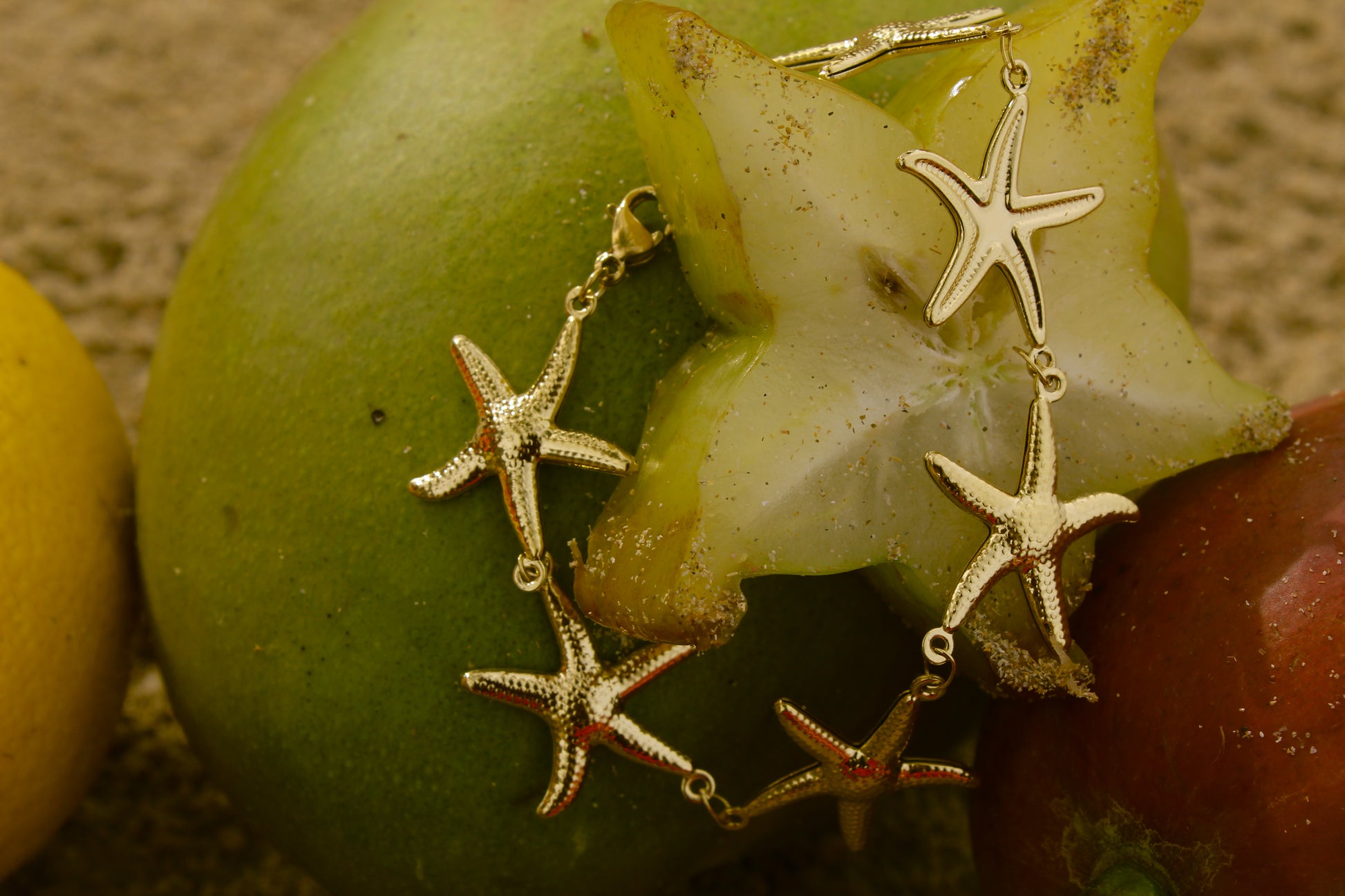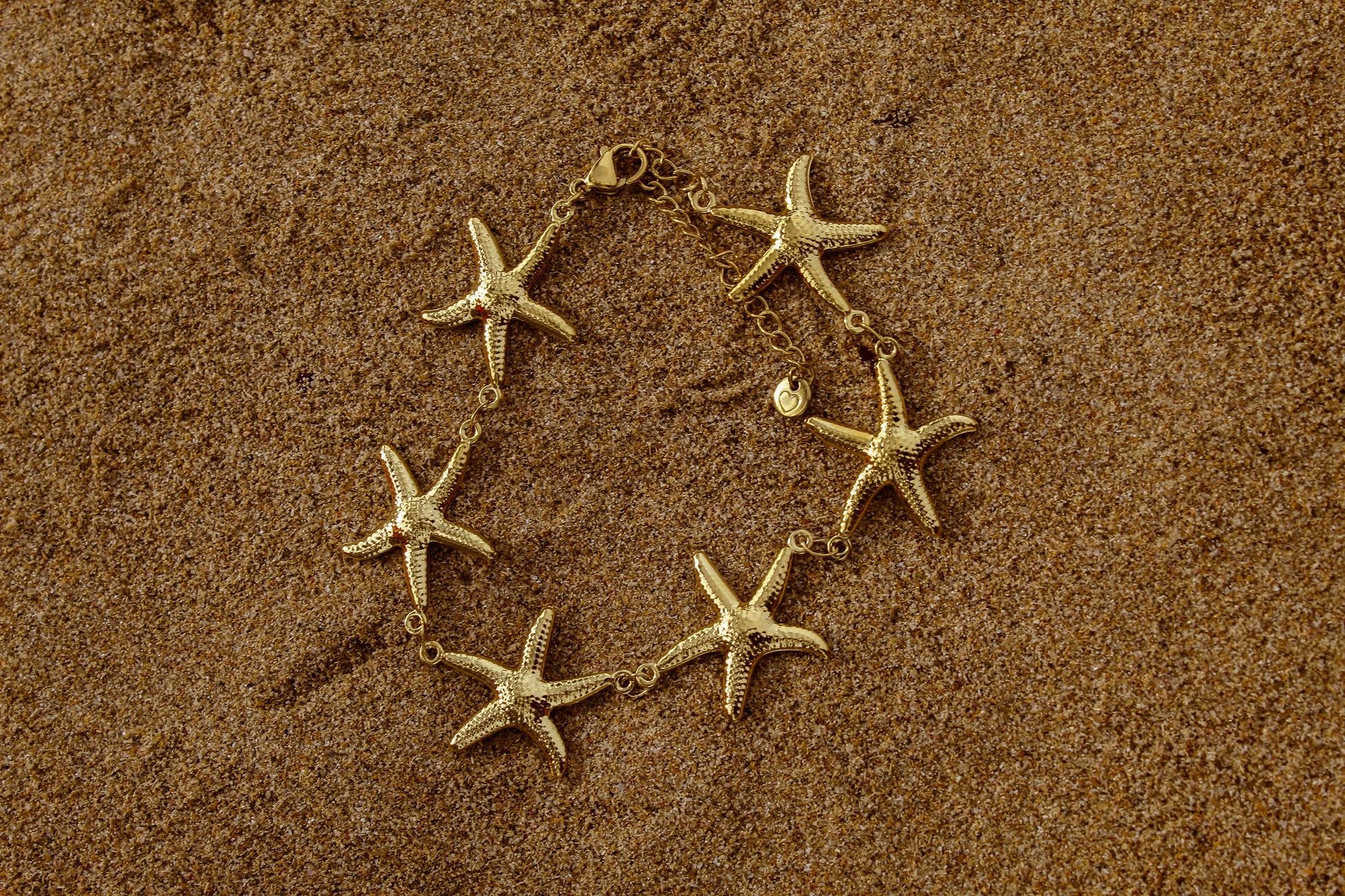 Estrellitas doradas bordeando la muñeca. Textura marina, brillo sutil. Cadena liviana y ajustable.